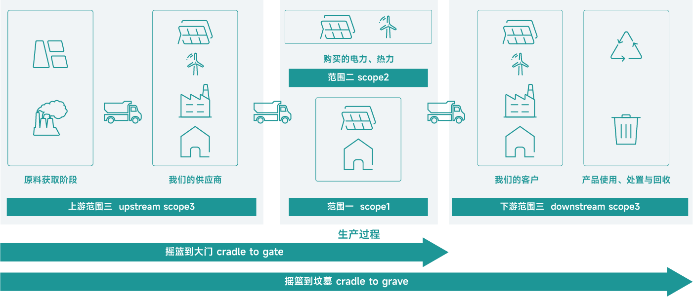 系统边界:摇篮到大门(包括原材料获取、原料运输和生产阶段)的碳排放总量